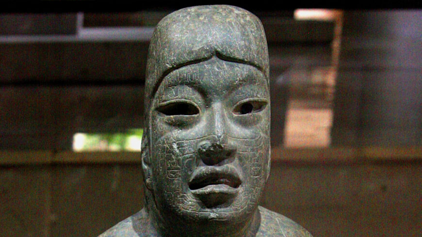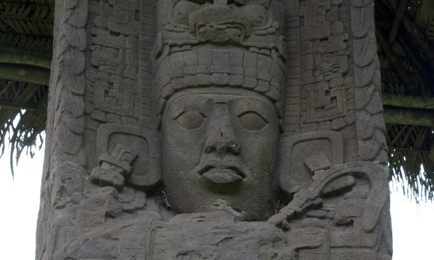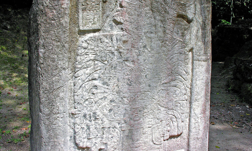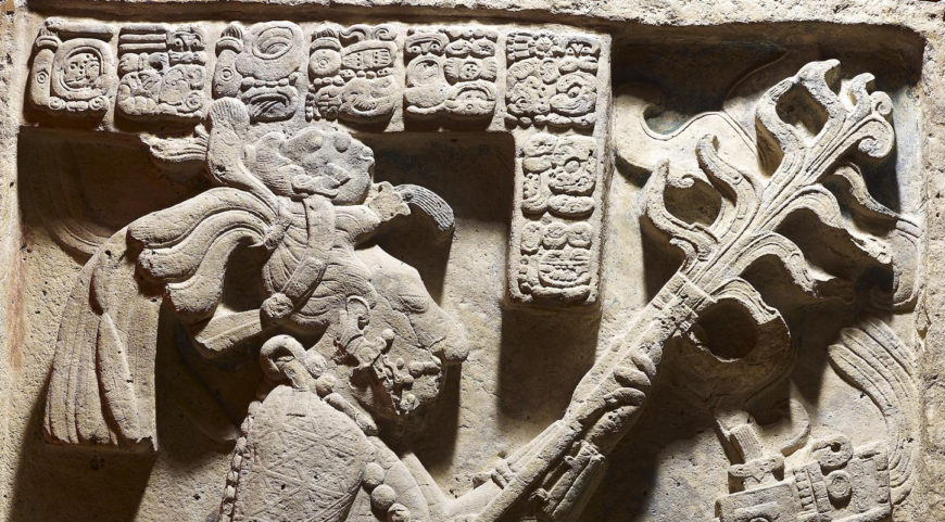 Chakalte’, Relief with Enthroned Ruler, late 8th century (Classic Maya), limestone and paint, 88.9 x 87.6 x 7 cm (The Metropolitan Museum of Art)